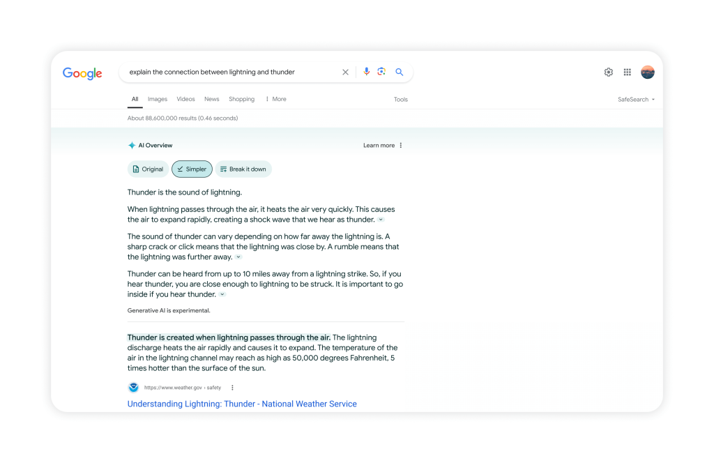Google is integrating AI overviews from Search Labs into its general search results pages. This means hundreds of millions of US searchers will gain access to AI overviews this week, with over 1 billion by year’s end. Searchers will soon be able to adjust the language and level of detail in AI overviews to suit their needs and understanding of the topic.